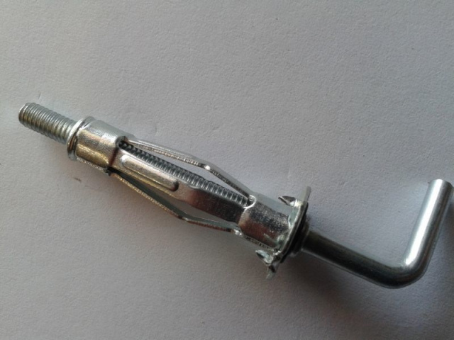 Распорный анкер с крючком, в отличие от кольцевого, удобен при креплении предметов, которые в процессе эксплуатации потребуется периодически снимать. К ним относятся нагреватели воды, радиаторы отопления, самонесущие изолированные кабели. Можно использовать как для бетонных, кирпичных оснований, так и для дерева.