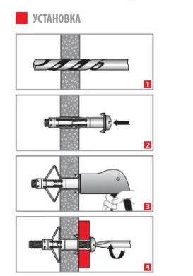 Какой принцип действия таких крепежей? Щелевые и пустотелые материалы имеют недостаточную силу трения. По этой причине обычные анкера здесь не подходят. Анкер-молли, в свою очередь, за счет своеобразной формы, сам образует необходимый упор. Непосредственно при монтаже дюбель не меняет обычную форму. Но, когда вы начнете вкручивать винт, она изменится.
