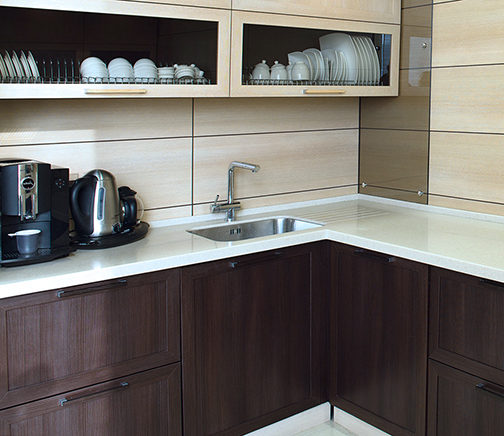 • Характерными условиями для кухни являются колебания температур, влага, и различные виды загрязнения жирами, маслами, пищевыми продуктами. Особенно это актуально для рабочей зоны. Отделка пластиковыми и ПВХ панелями самое распространенное, и удачное решение для кухни, избавляющее от проблем с уходом. Однако, украшенная МДФ панелями обеденная зона вполне успешно может дополнить интерьер.