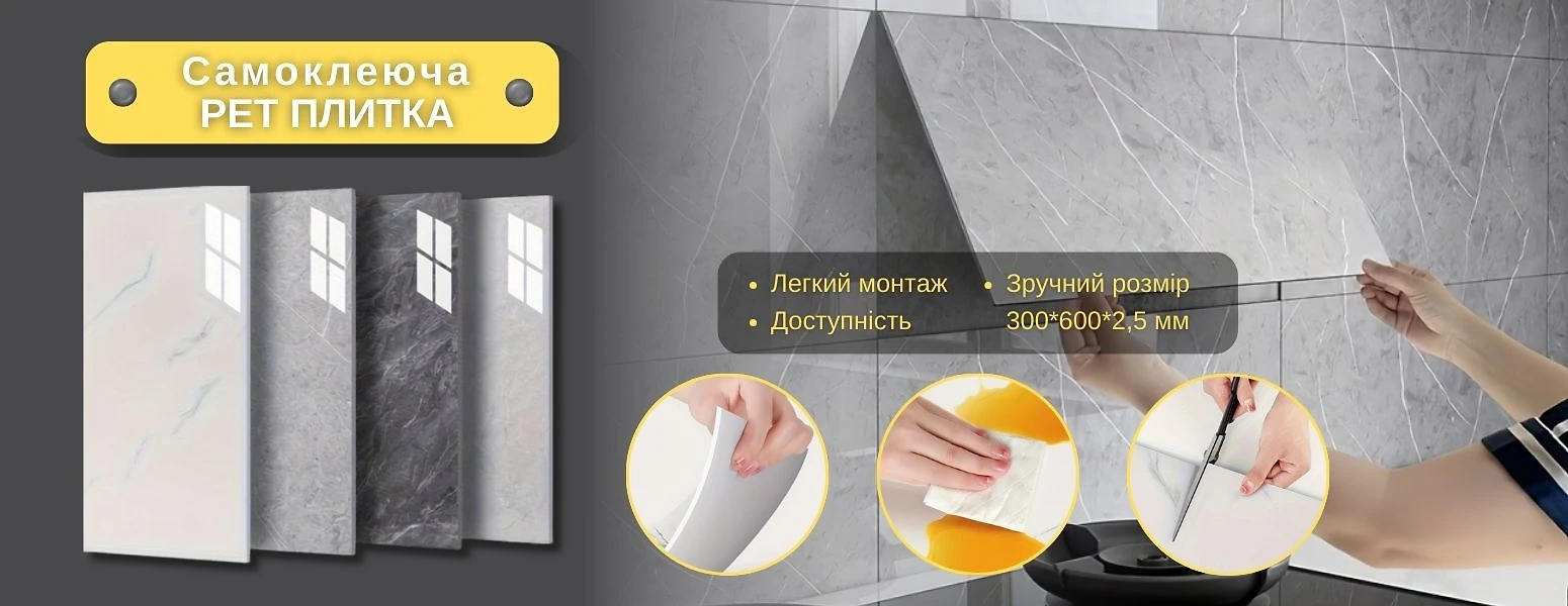 - Оздоблювальні матеріали. Тут представлені товари для фінішного оздоблення приміщень: 3Д панелі та самоклеючі плівки, вінілова плитка й плитка для стелі, а також стельові плінтуси та клеї для них.
